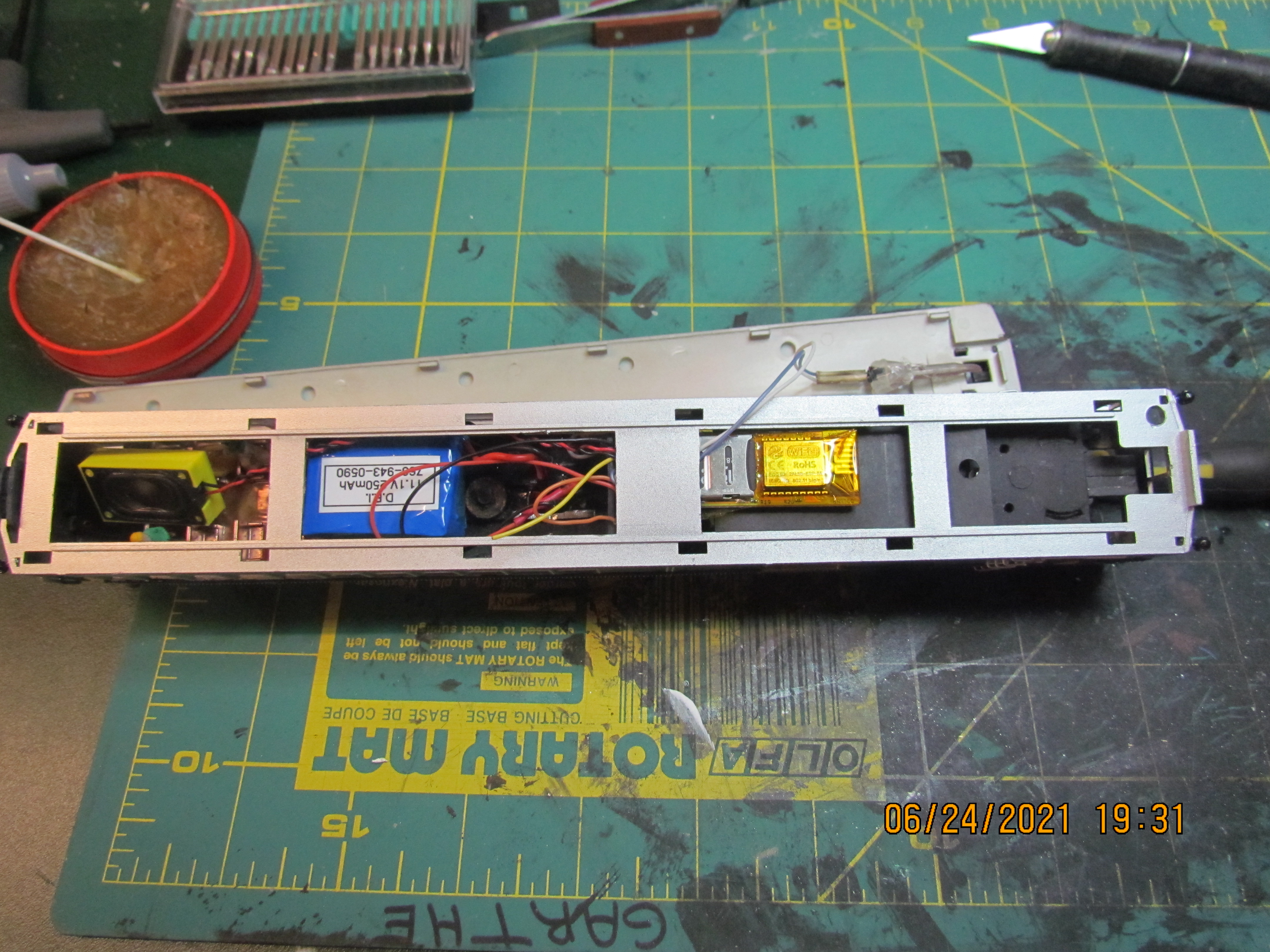 Here is a Doodlebug I converted to battery (using Dead Rail Installs battery system) and Loco WiFi chip. I had to remove some of the seats to fit the battery and drill a hole in the bottom for the wires. I also had to remove the wide shell support so everything would fit. I have it set up so I do not have to remove the shell to charge the battery. (The charger cord will come out of the hole in the bottom of the Doodlebug.) Everything seems to be working well. It’s a custom paint job I did that still needs some tweaking.