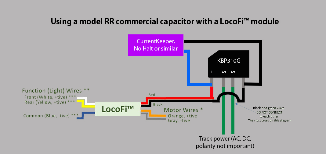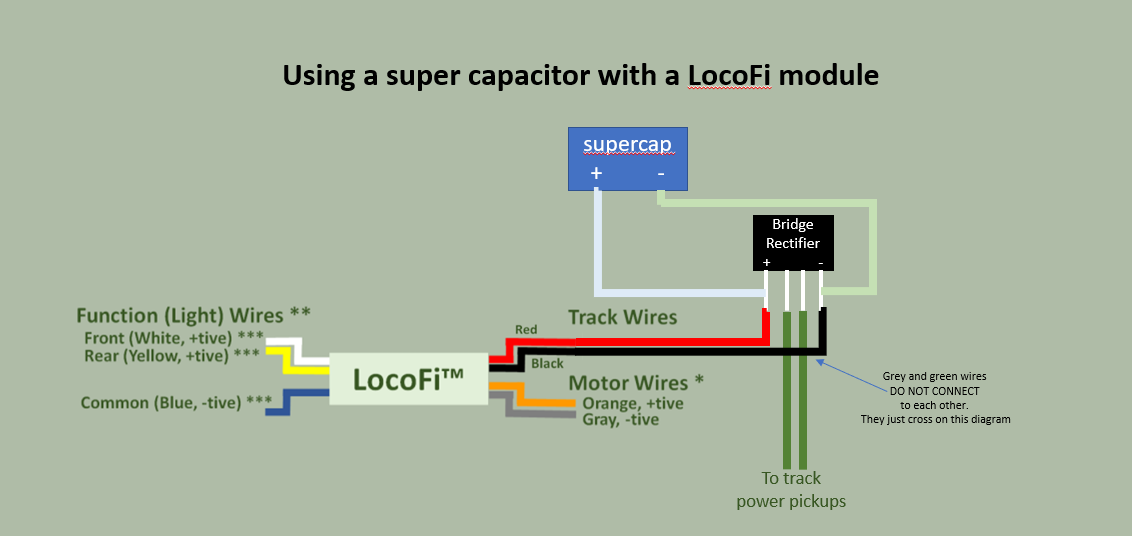 Here’s the wiring diagram I followed when installing a LocoFi module and super-capacitor in my HOn3 RGS Goose.
