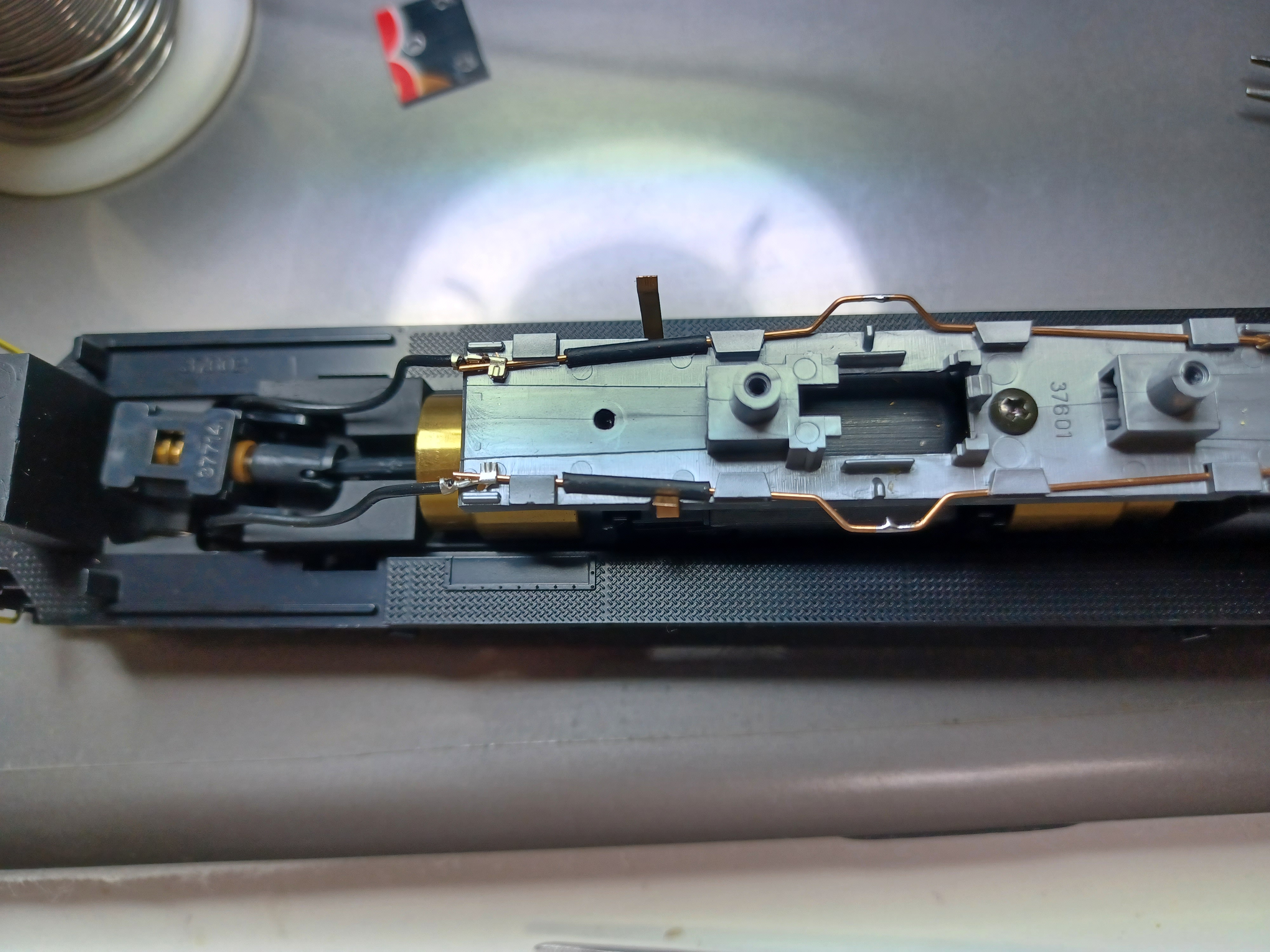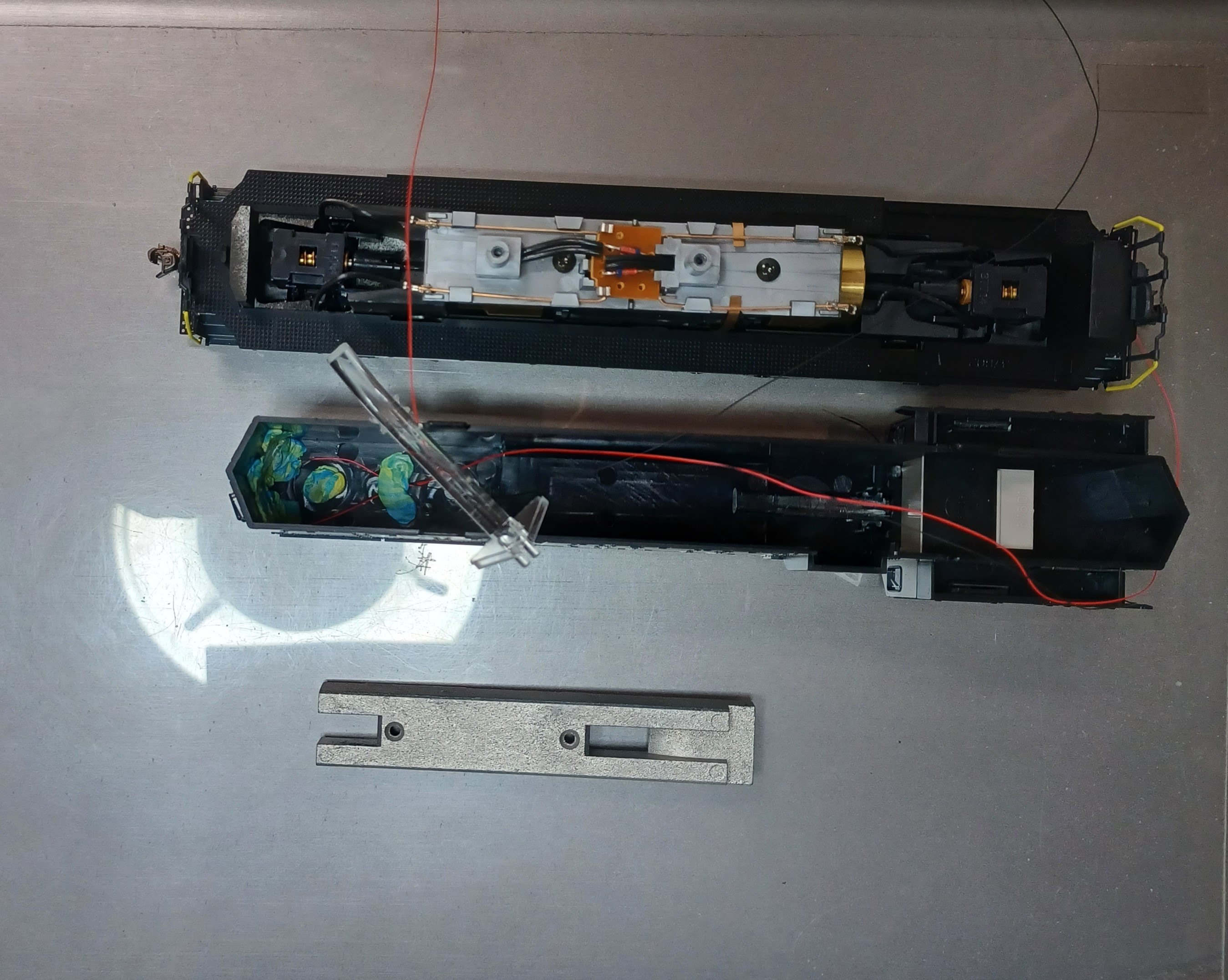 Spare parts! Rear light pipe, light board and weight. Even without the weight, this loco is fairly heavy and has good traction.
