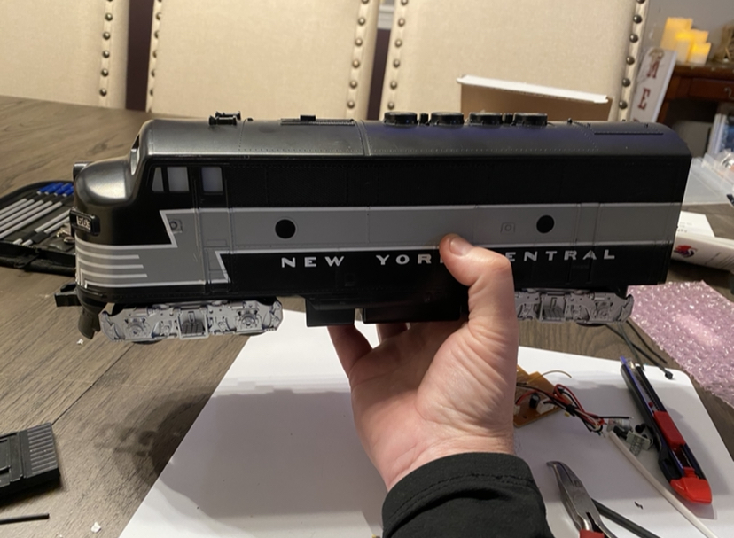 I’ve been converting four Lionel Ready to Play F7 engines over to LocoFi. I’m a life long RC guy but spent a lot of time as a kid with my dads old ‘50s vintage Lionel O gauge trains and I love the concept of the LocoFi product! Obviously the Lionel Ready to play line is not the most scale stuff out there but I somehow ended up with tons of track and 5 train sets of it! After having lots of fun trying to juggle a consist of 4 Locomotives using 4 different handheld transmitters for awhile my research led me to LocoFi And I promptly ordered 4 DDLLHA units! My approach to this project is keep It lighthearted and have fun with this cool product from LocoFi!
