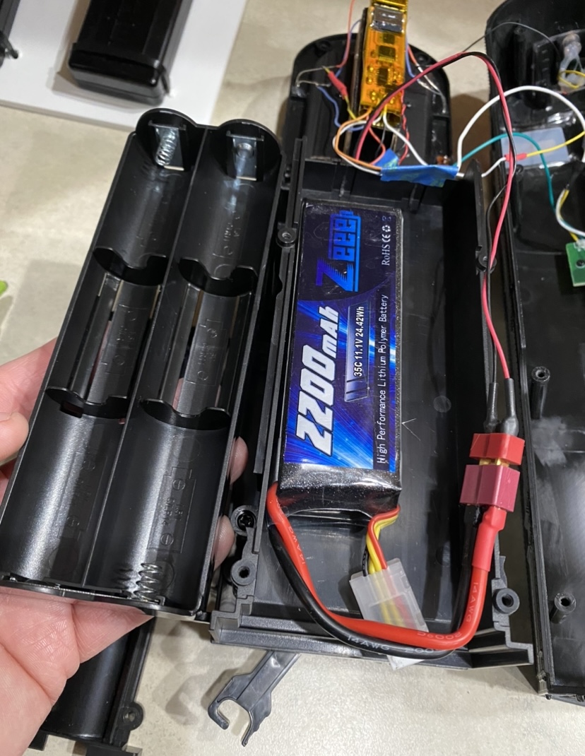 Here I removed the cap plate that houses the old battery tray so I can use that space to hold up to a 4000 3s lipo! This also means I can utilize the original battery access door and easily remove the lipo to swap it out for a fully charged one.