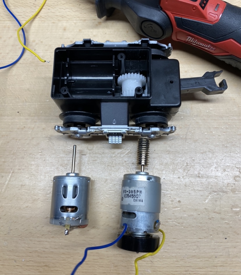 After a lot of research and trial and error I’ve determined that the original motor in the Lionel RTP F7 is a 3 pole RS-360 type. This motor does not work well with the DDLLHA unit. In this discovery process I tested a couple of 5-pole motors, an HO Walthers 5-Pole Skew-Wound and an O gauge MTH RS-385PH and both of course run beautifully with the DDLLHA unit! So I ordered a few Mabuchi RS-365 motors. The 365 motors are a direct physical replacement for the old 360’s and have similar performance specs to the MTH 385 and of course are a 5-pole motor.