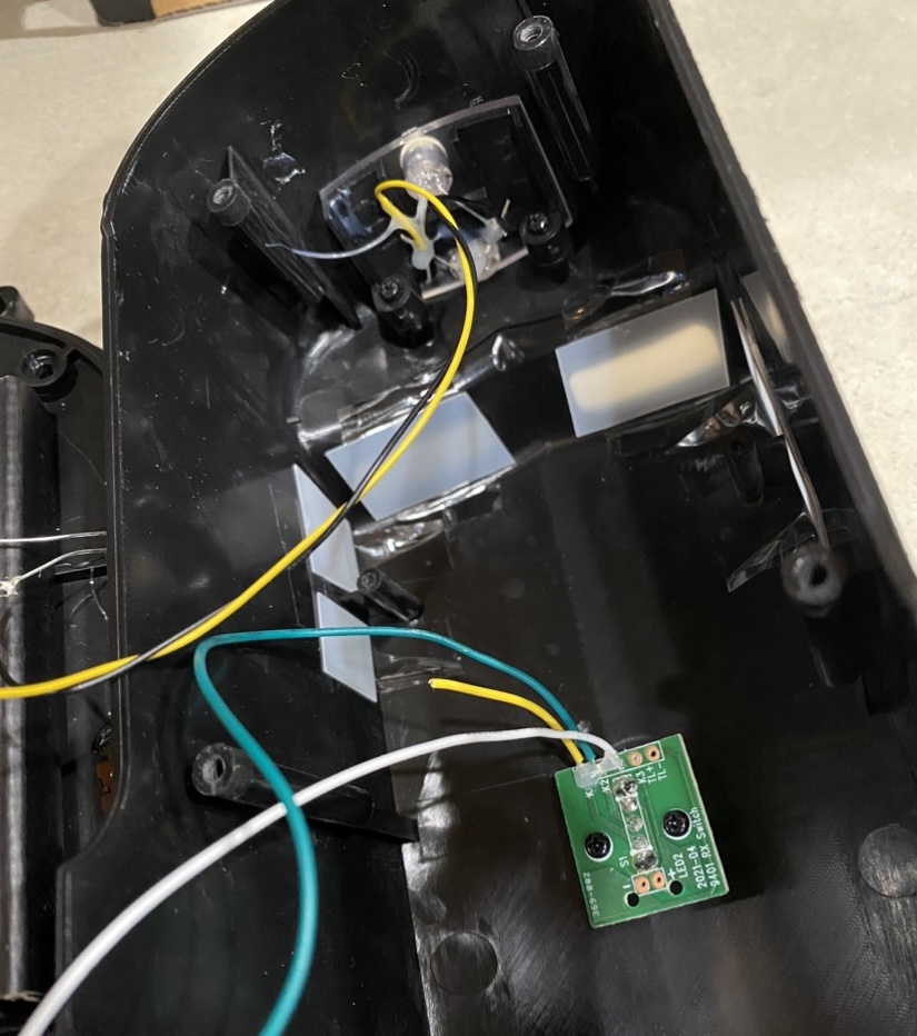 I utilized the original power switch and headlight LEDs. I removed the stock one-piece black plastic windshield and installed semitransparent windows to allow the cab to be lit up from the inside.