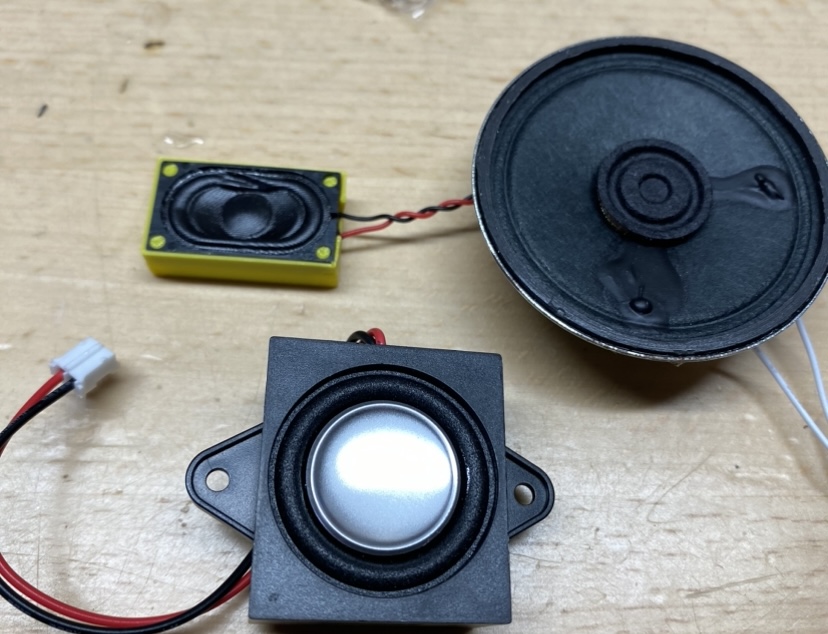One of the most fun aspects with a project like this is testing, modifying things and learning what works and what don’t! I tried the large original Lionel speaker and it’s ok but I wanted better! So I ordered a few of the silver ones(pictured here for size comparison). So far they sound awesome! Much more fuller rounded sound reproduction! I have some other ones (same size as the large one) ordered and I’ll try those as well when they get here 🙂