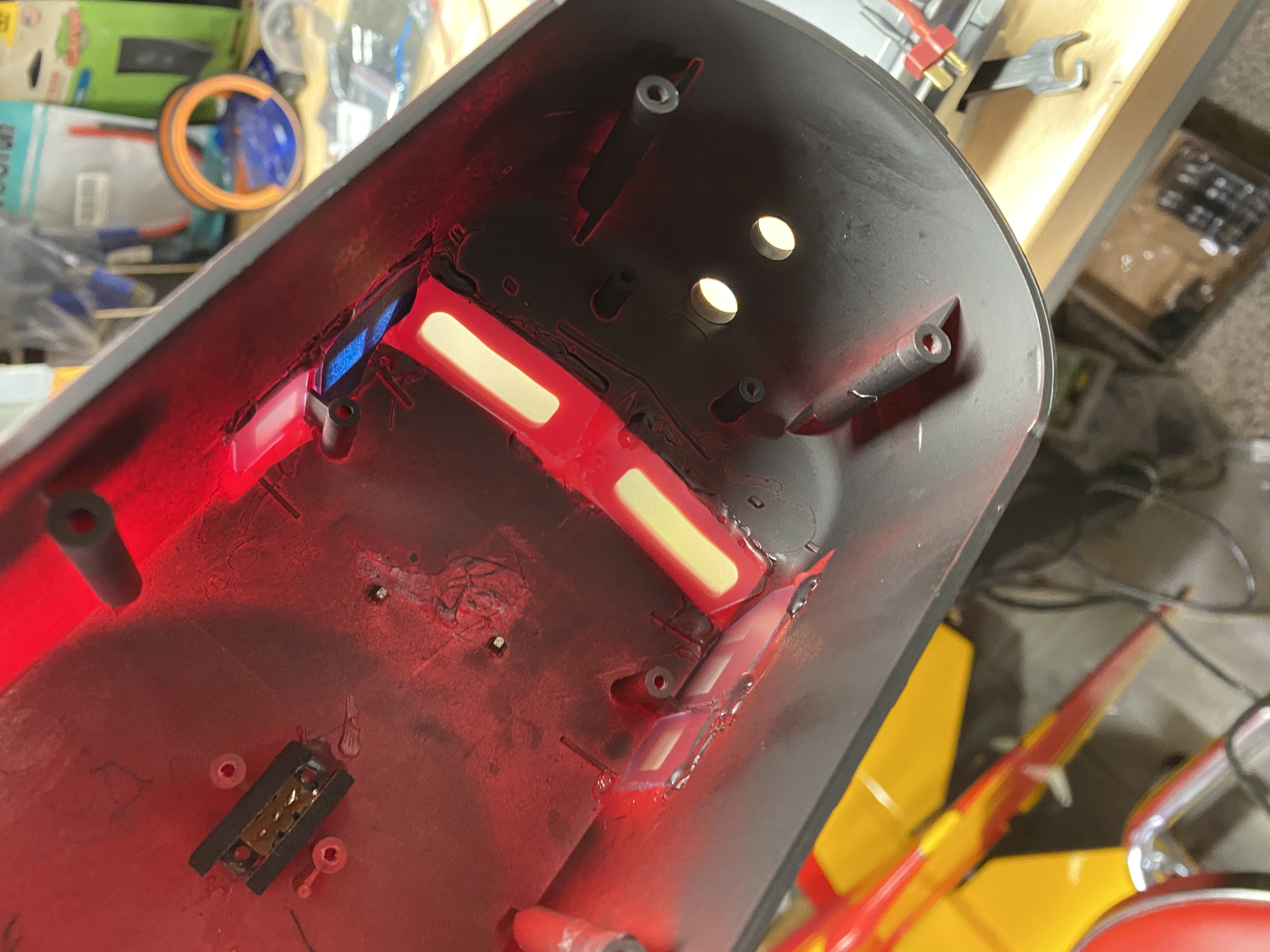 LEDs seem to want to shine through the red shell. Little black paint should fix that!